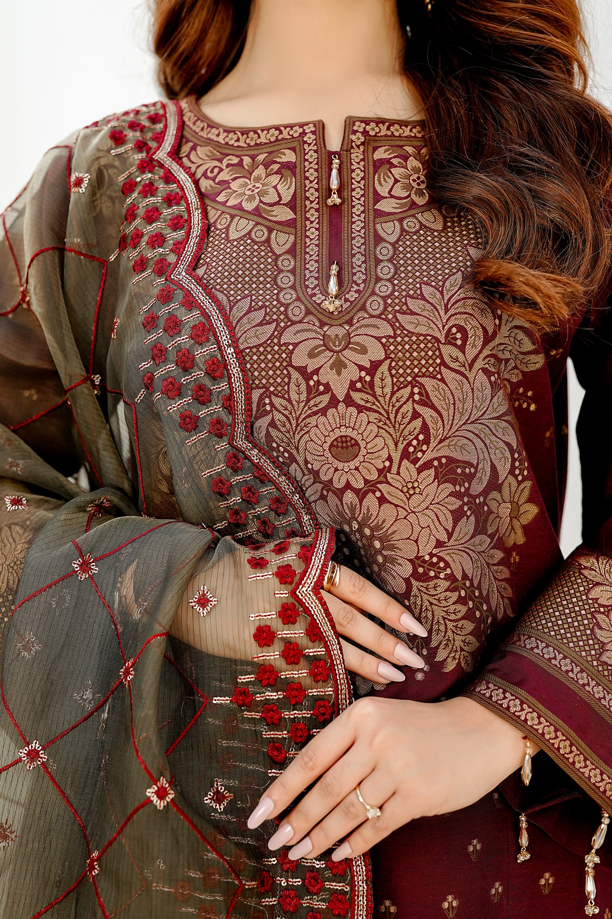 ROYAL BLOOM - Maroon / Unstitched